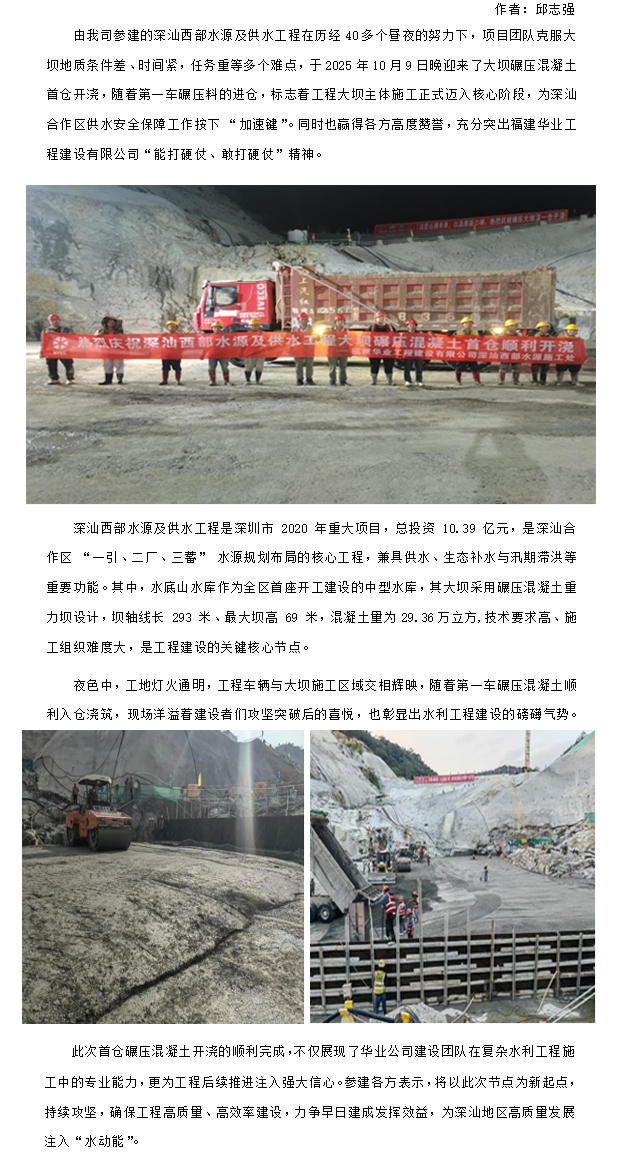 热烈庆祝深汕西部水源及供水工程大坝碾压混凝土首仓顺利开浇